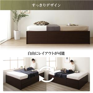 商品説明【デザイン】レイアウト自由なヘッドレスベッド ・すっきりとしたデザイン ヘッドレスだから見た目はすっきり、 置く方向を選ばないからレイアウトが自由に ・自由にレイアウトが可能 窓の場所を気にせずにレイアウトできる 【収納】長尺物も入るBOX収納構造 ・大容量のBOX収納構造 頑丈で、ホコリの侵入も防ぎ、長物も収納できる ・思い通りに仕分けられる5杯の引き出し収納 浅型4杯、深型1杯の計5杯の引き出しで、普段使うものから かさばるものまできちんと仕分けて、すっきり収納できます。