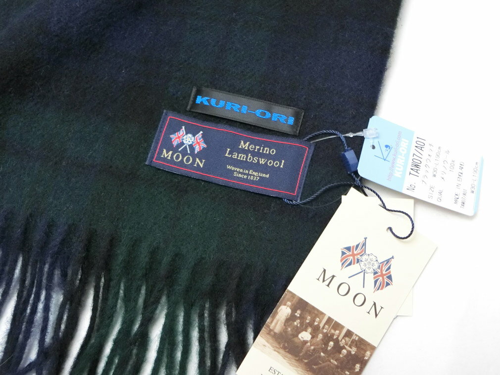 MOON×KURI-ORI マフラー メリノラムウール100% 紺グリーンチェック メンズ/レディス/学生 ブラックウォッチ 30×190